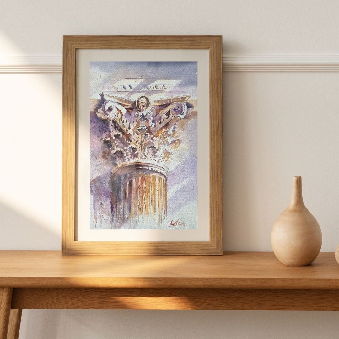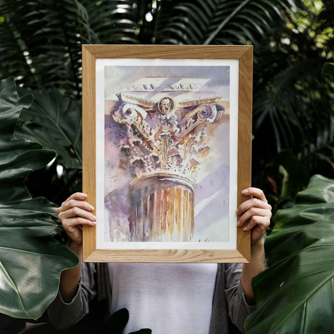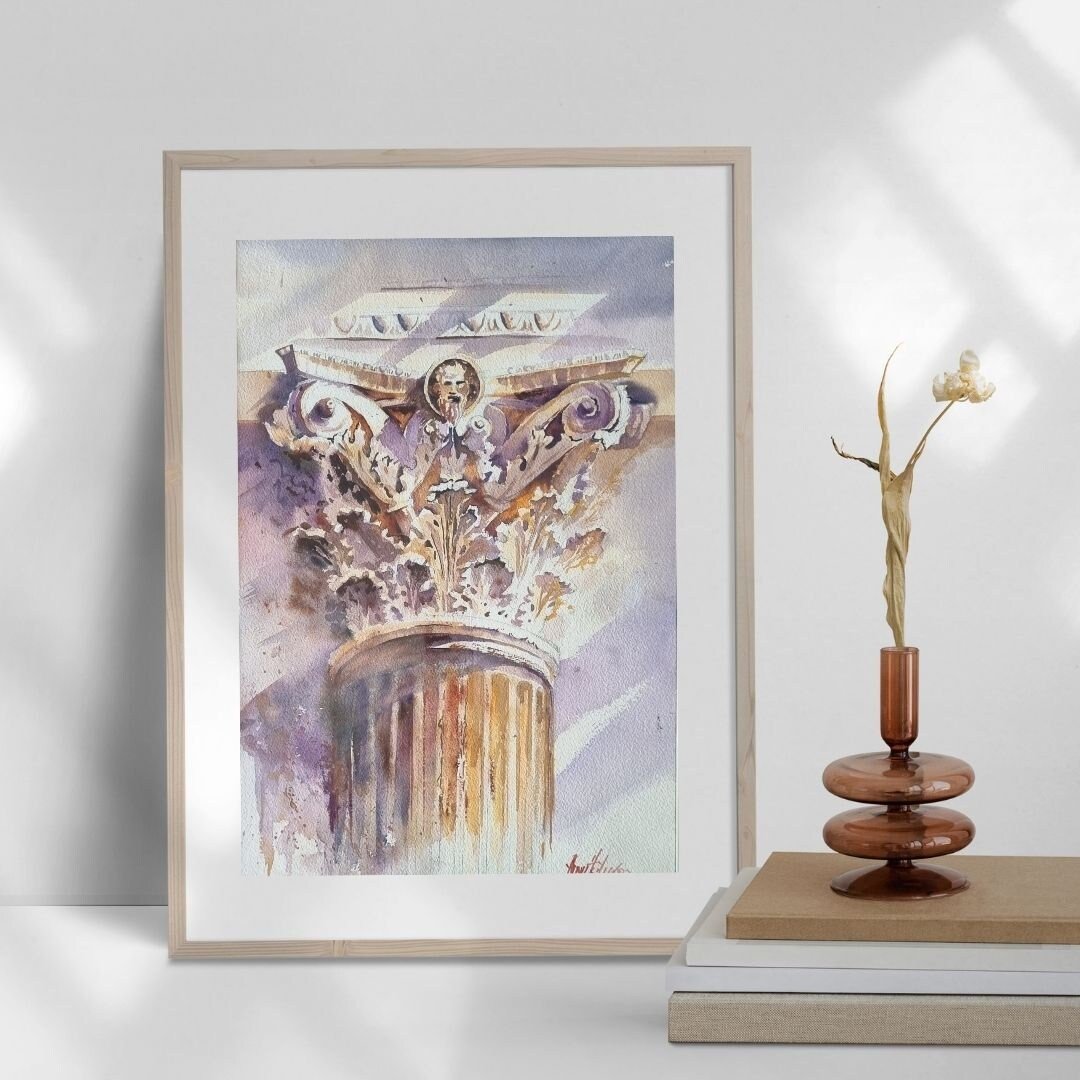 Antik Sütun Başlığı Suluboya Tablo Hikayesi ve Teknik Detaylar