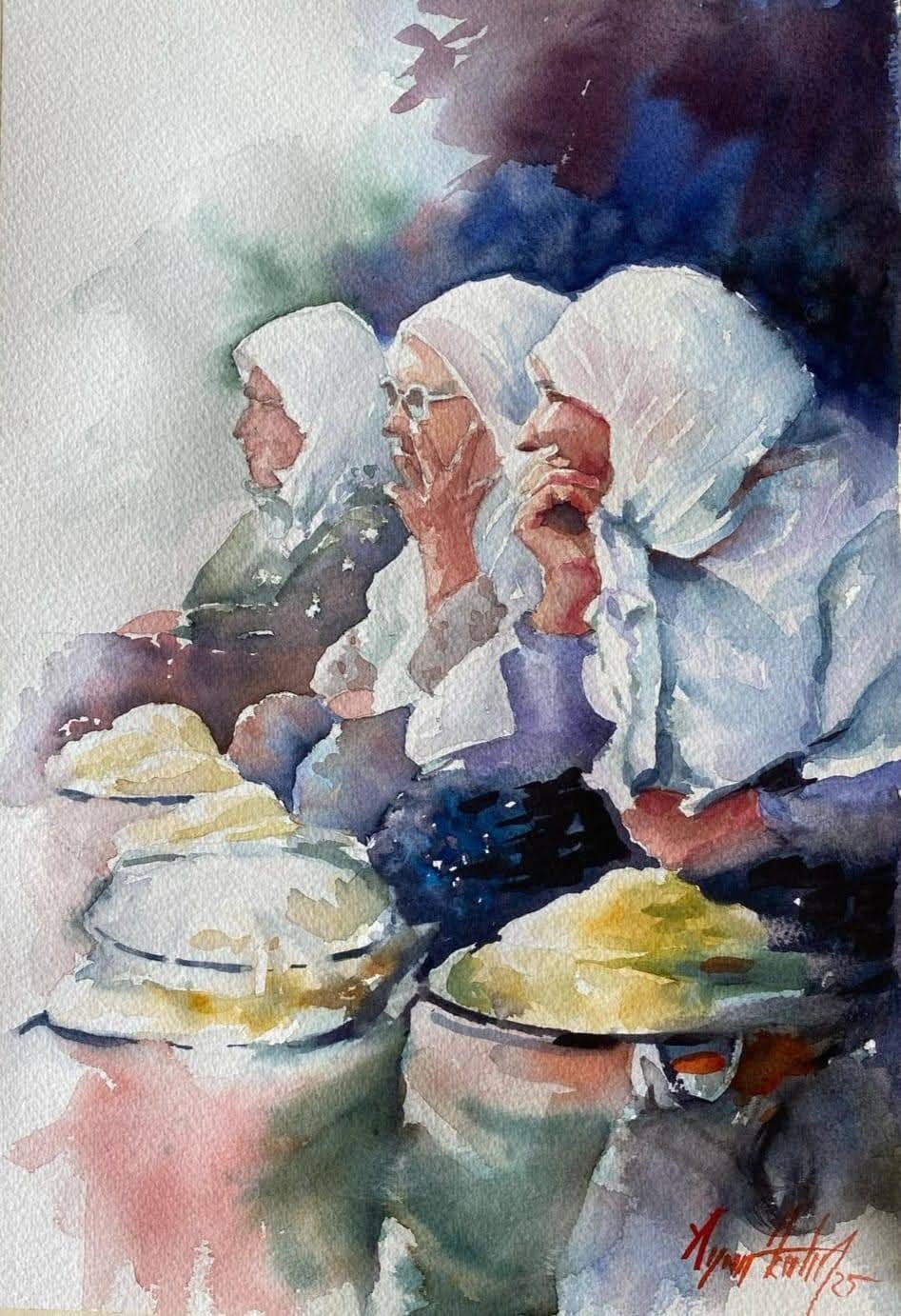 - 📍 Konu: Anadolu kadınları, geleneksel kıyafetler, figüratif sanat, leke tekniği, toplumsal yaşam, kadın portreleri, ışık ve gölge çalışması, Aynur Akalın Eserleri.