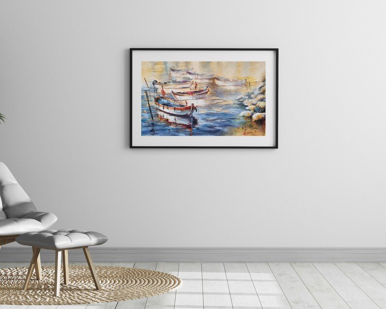 Deniz ve balıkçı tekneleri temalı bu özgün Suluboya Tablo, Ressam Aynur Akalın’ın “Uzakların Yakınlığı” serisinden özel bir çalışmadır.