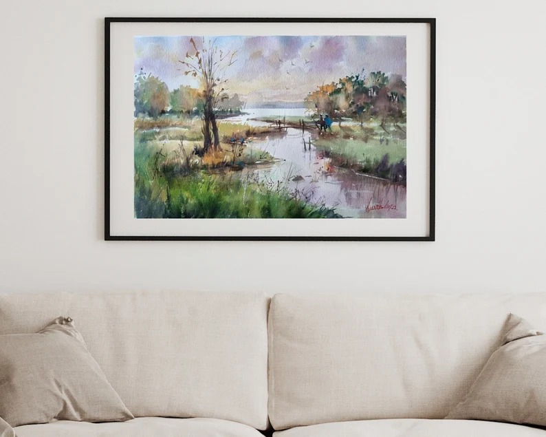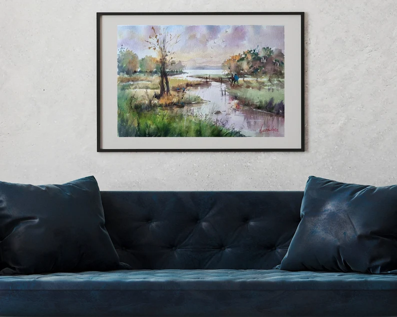 Huzurlu bir doğa manzarası temalı bu özgün Suluboya Tablo, Ressam Aynur Akalın’ın “Doğanın Ritmi” serisinden özel bir çalışmadır.