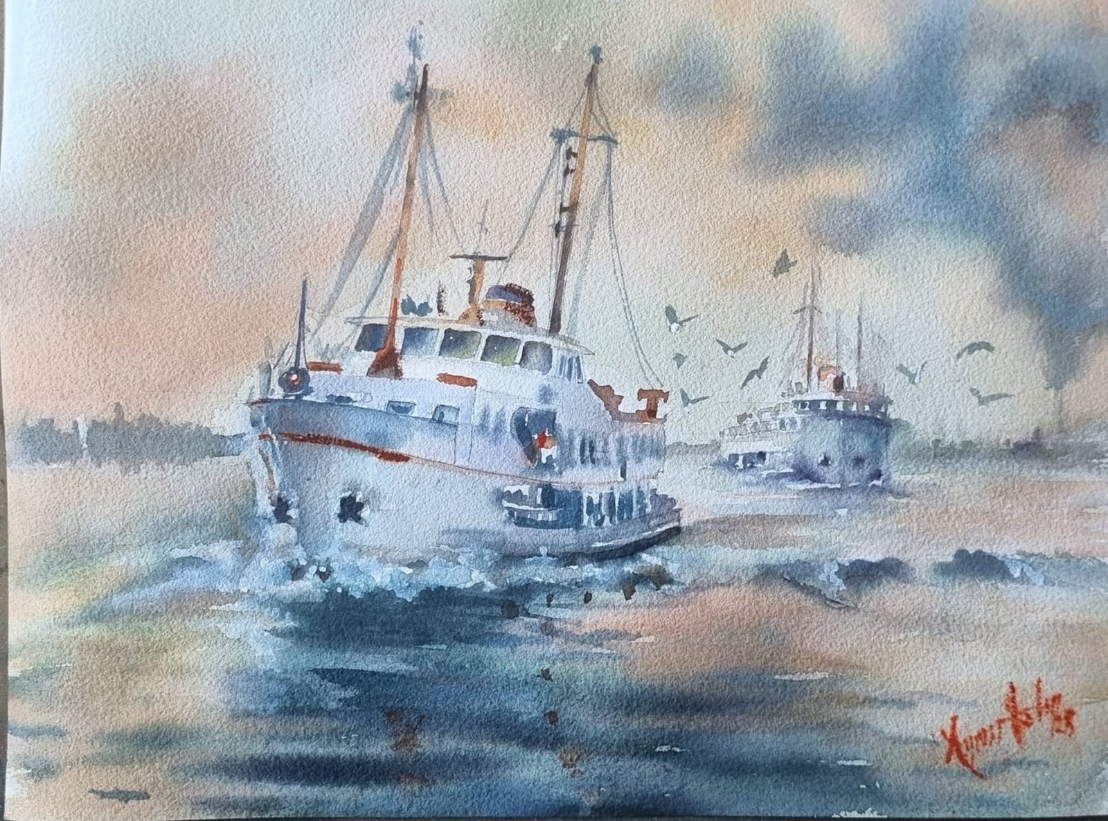 - 📍 Konu: İstanbul, Vapur, Deniz, Martı, Peyzaj, Nostalji, Şehir Yaşamı, Boğaziçi, ışık ve gölge çalışması, Aynur Akalın Eserleri.