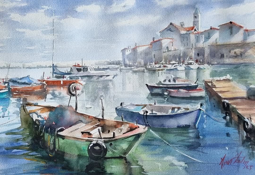 Deniz ve liman temalı bu özgün Suluboya Tablo, Ressam Aynur Akalın’ın “Deniz Esintileri” serisinden özel bir çalışmadır.
