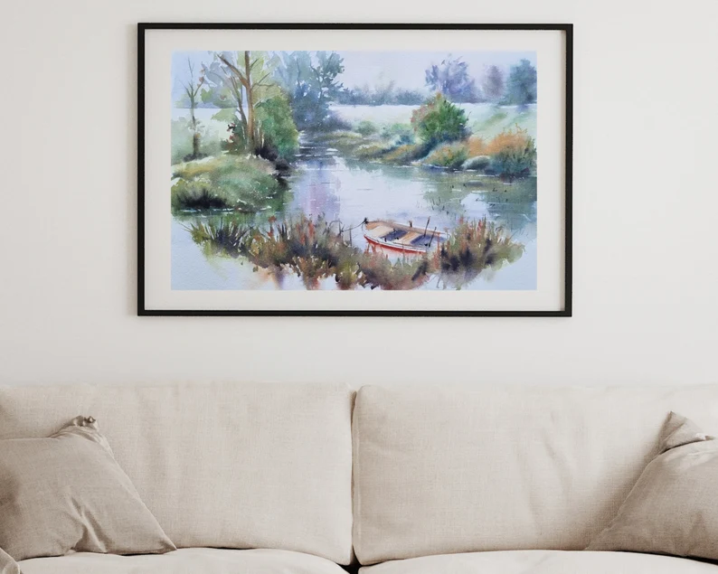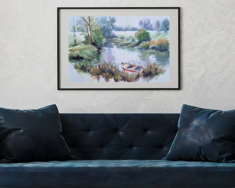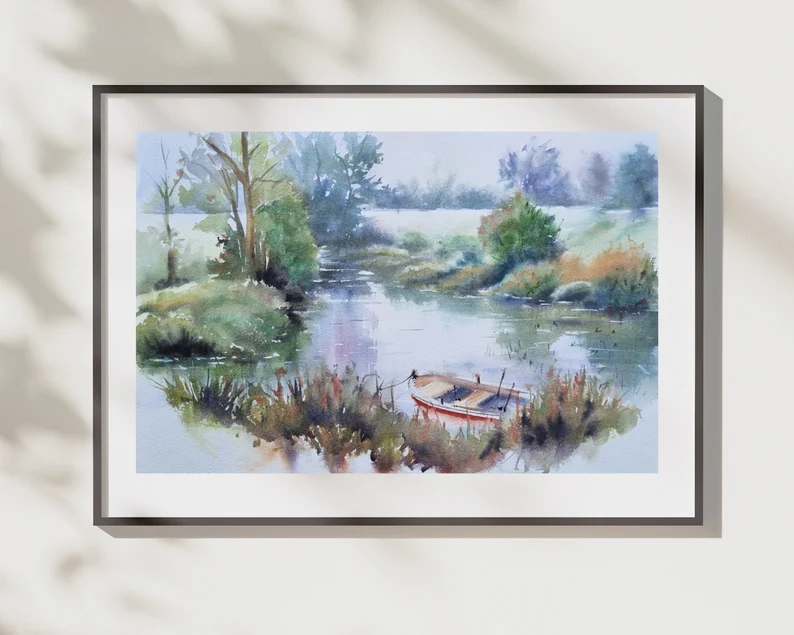 Sakin Nehir ve Kayık Suluboya Tablo Hikayesi ve Teknik Detaylar
