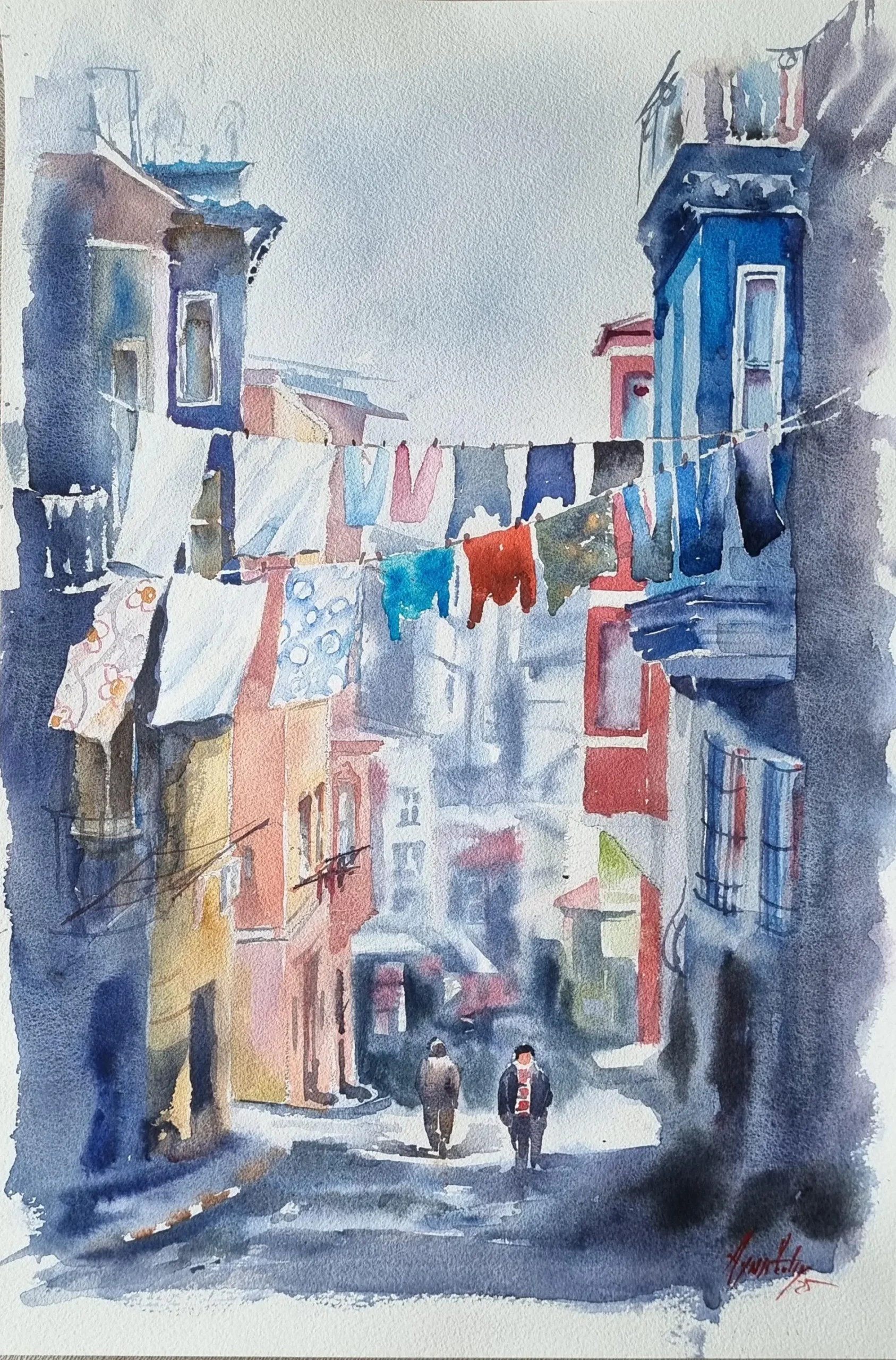 - 📍 Konu: Tarlabaşı sokak yaşamı, kentsel doku, suluboya teknikleri, İstanbul mimarisi, toplumsal yaşam, ışık-gölge draması, şehir peyzajı, Dinginlik, suyun akışkanlığı, Hediye Tablo, çağdaş sanat, ışık ve gölge çalışması, Aynur Akalın Eserleri.